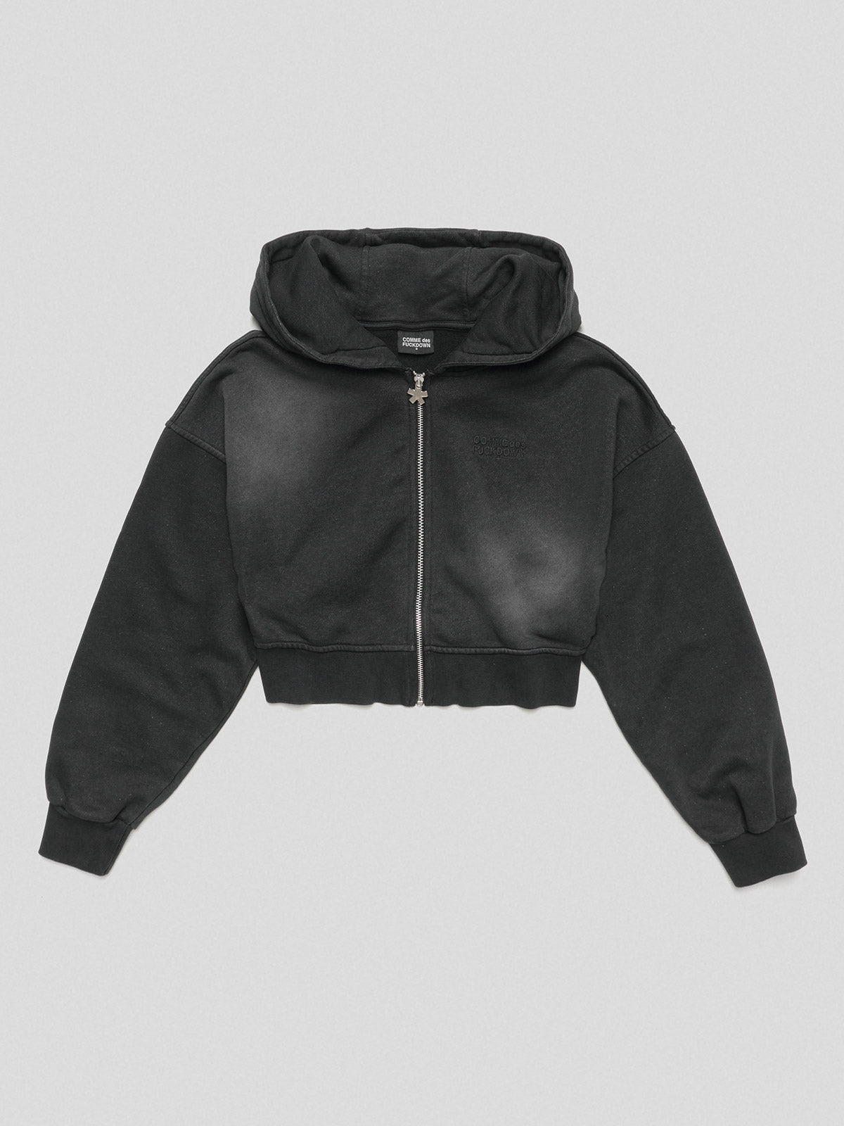 CFABW01386 - Felpa Tinta All Zip Con Ricamo • Nero