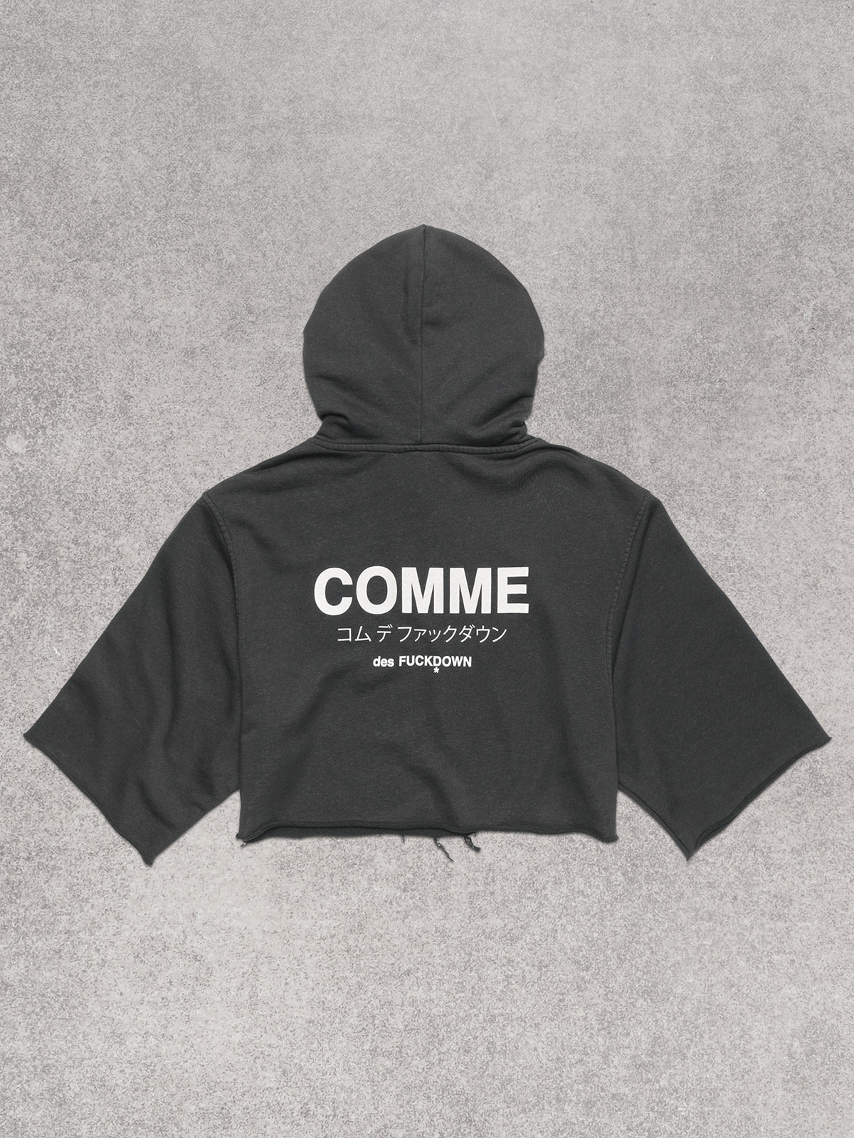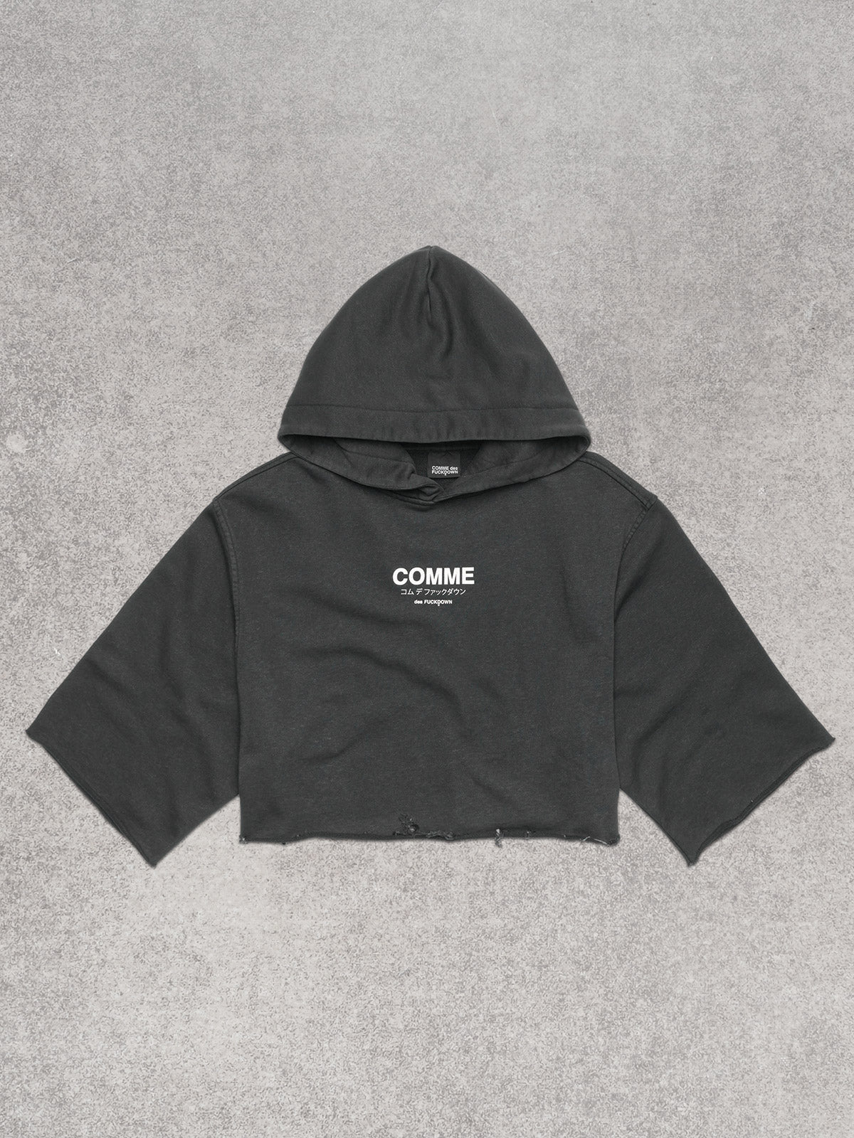 CFABW01580 - Felpa Cappuccio Crop Stone Washed Con Stampa Sul Davanti E Retro • Nero