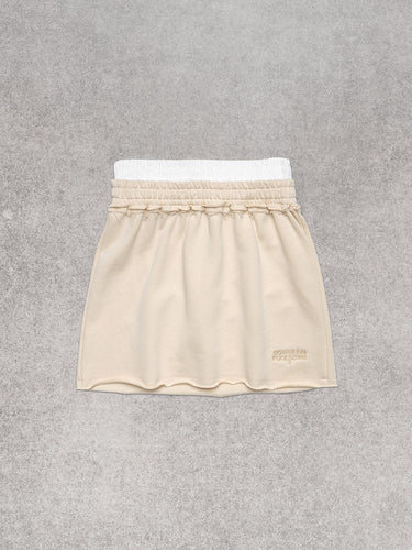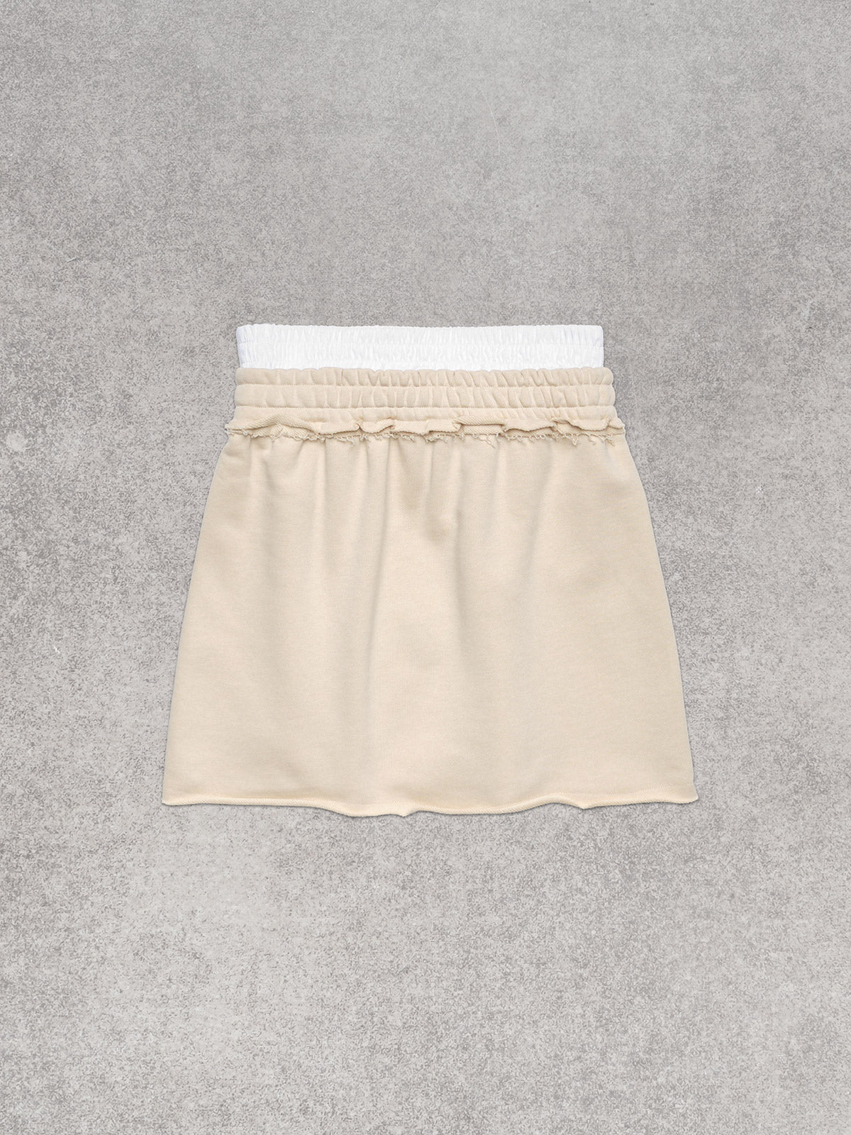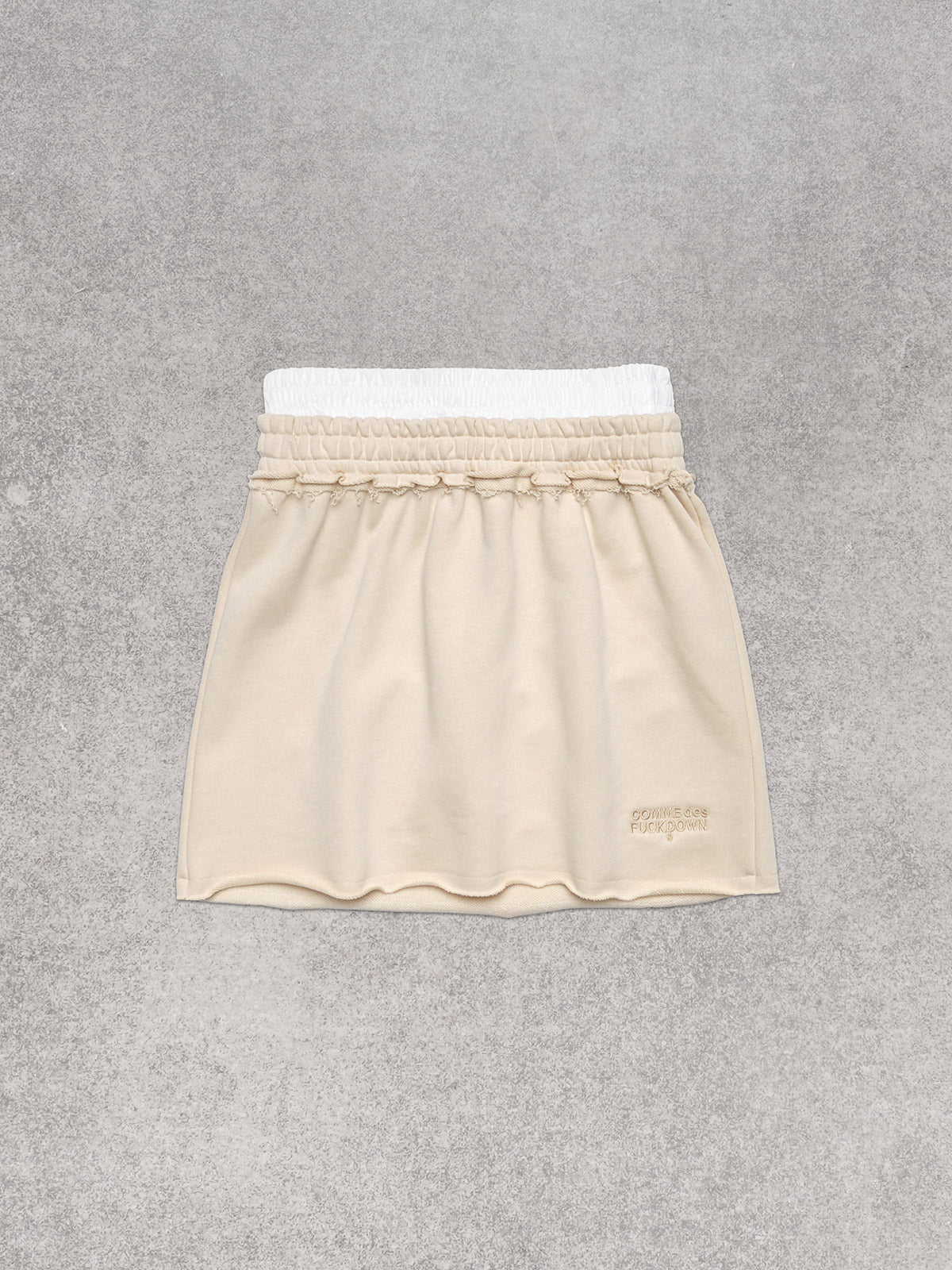 CFABW01597 - Gonna A Tubino Con Cuciture Taglio Vivo E Ricamo Sul Davanti • Beige