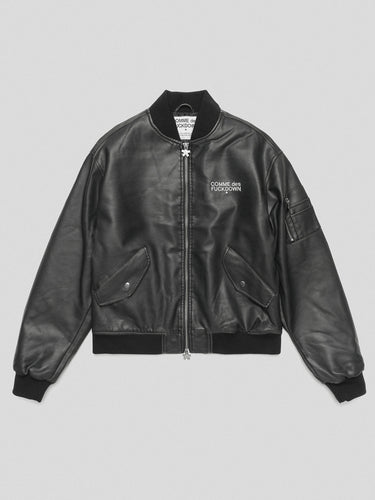 Bomber Jacket in Faux Leather with Embroidery and Patches